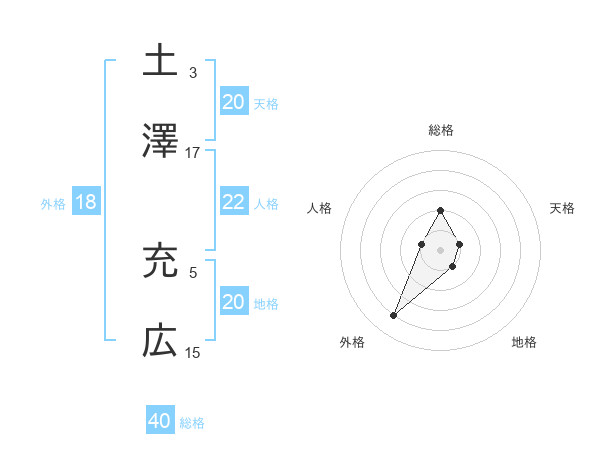 土澤 充広さんを姓名の画数から五運を鑑定