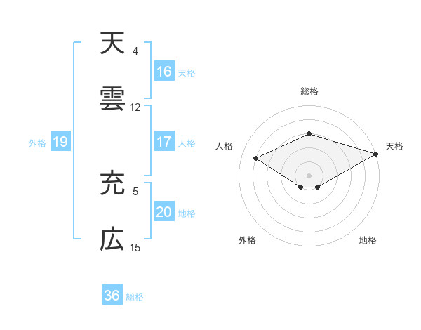 天雲 充広さんの天格は16画の5点!