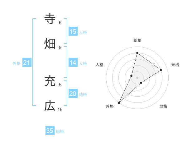寺畑 充広さんの天格は15画の4点!
