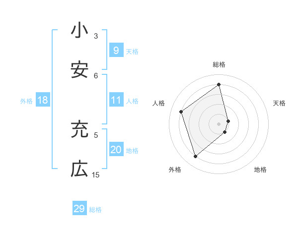 小安 充広さんの総格は29画の4点!