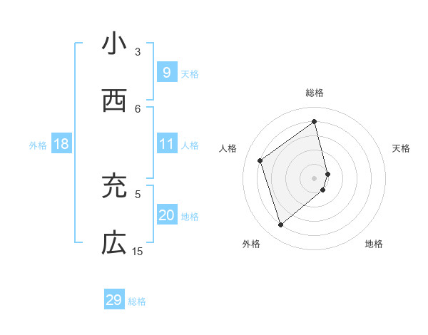 小西 充広さんの総格は29画の4点!
