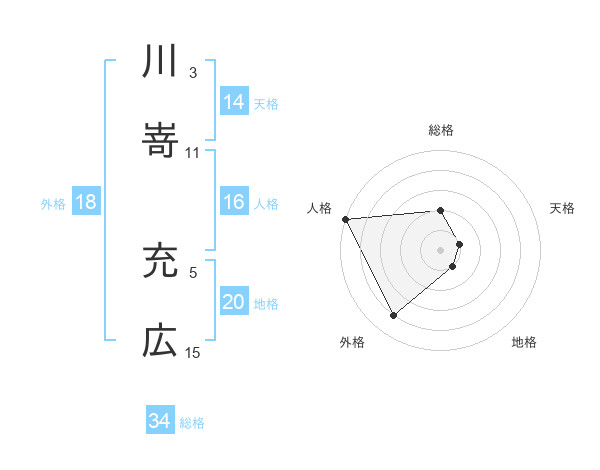 川嵜 充広さんを姓名の画数から五運を鑑定