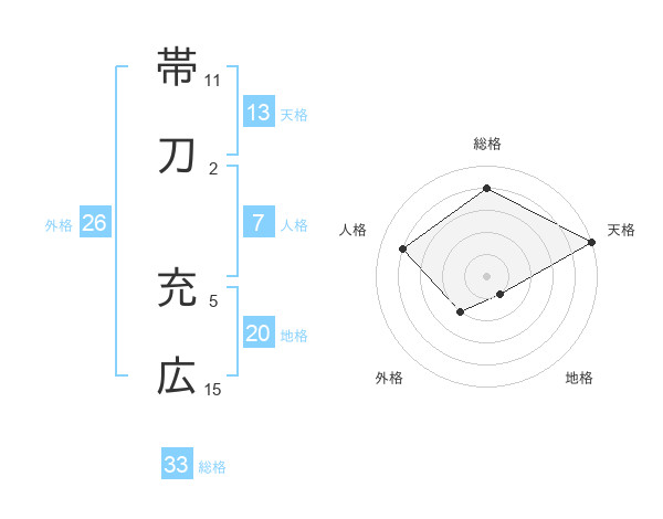 帯刀 充広さんの天格は13画の5点!