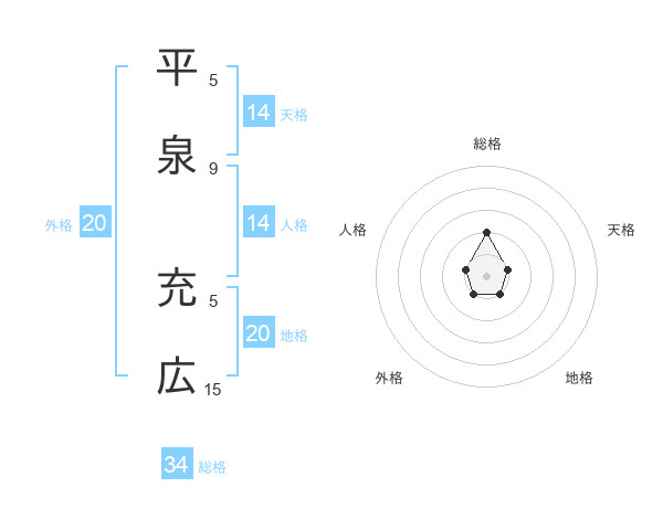 平泉 充広さんの総格は34画の2点!