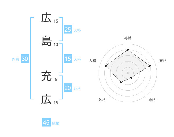 広島 充広さんの総格は45画の4点!