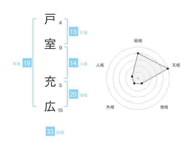 戸室 充広さんの天格は13画の5点!