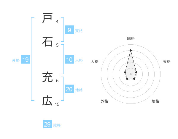 戸石 充広さんの総格は29画の4点!