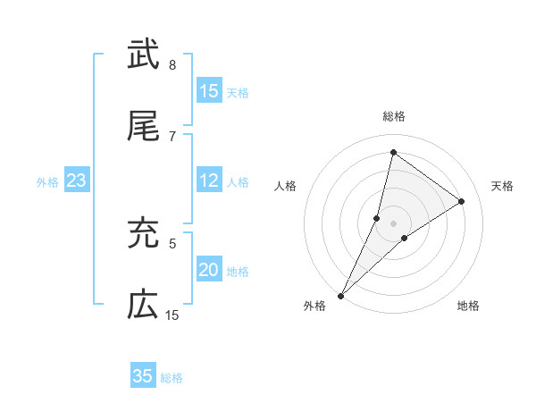 武尾 充広さんの天格は15画の4点!