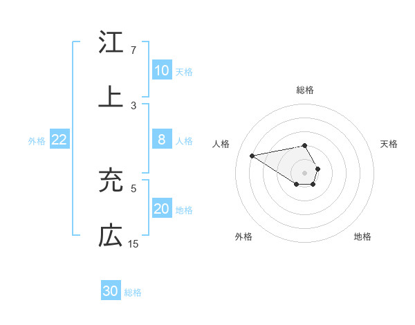 江上 充広さんを姓名の画数から五運を鑑定