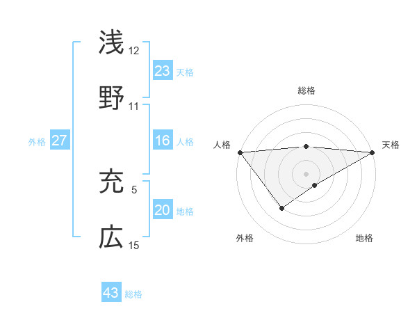浅野 充広さんの総格は43画の2点!