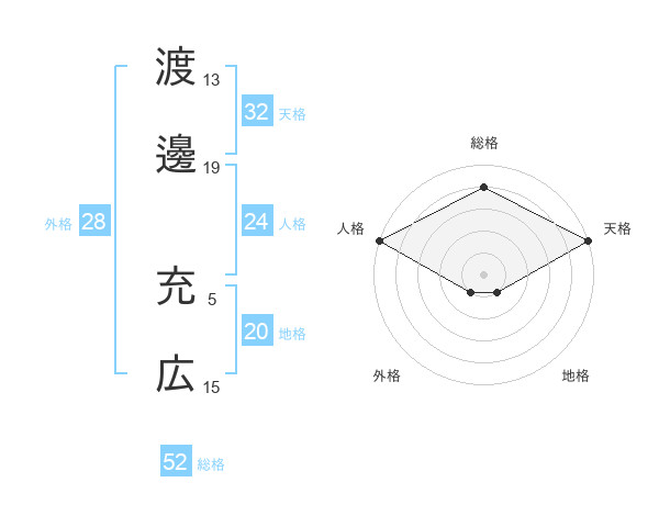 渡邊 充広さんを姓名の画数から五運を鑑定