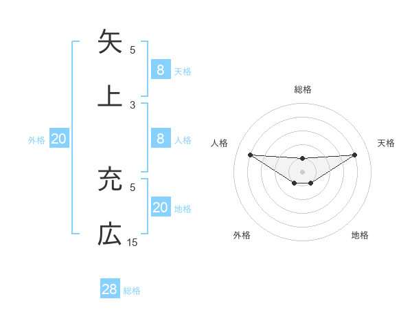 矢上 充広さんの天格は8画の4点!