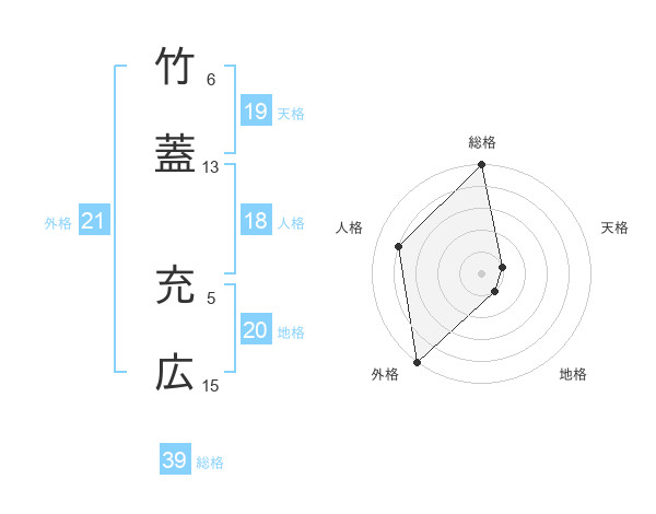 竹蓋 充広さんの総格は39画の5点!