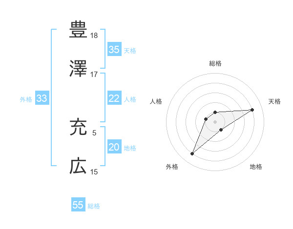 豊澤 充広さんを姓名の画数から五運を鑑定