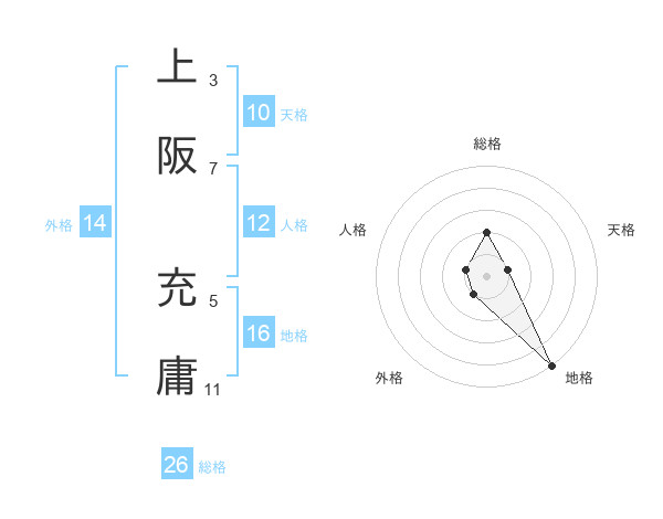 上阪 充庸さんを姓名の画数から五運を鑑定