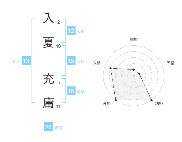 入夏 充庸さんを姓名の画数から五運を鑑定