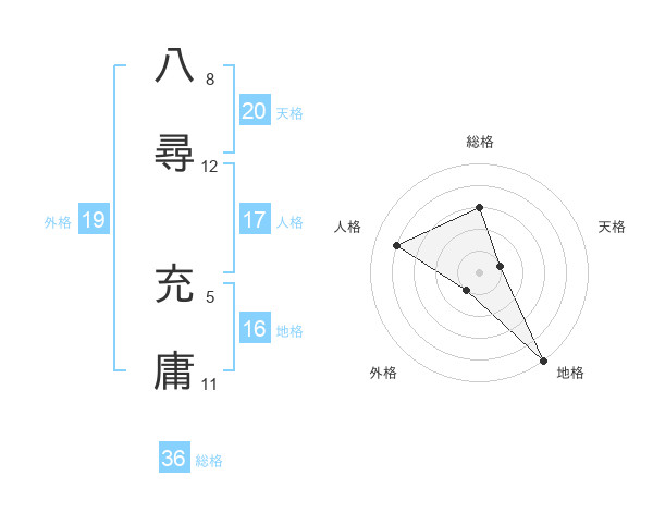 八尋 充庸さんを姓名の画数から五運を鑑定