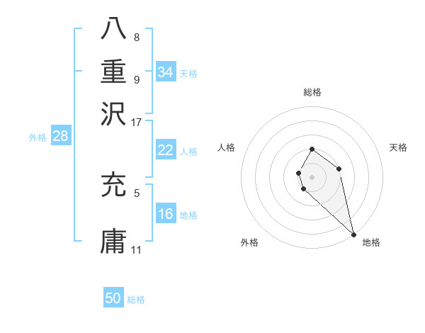 八重沢 充庸さんの総格は50画の2点!