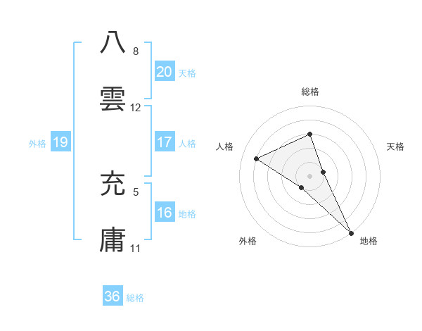 八雲 充庸さんの天格は20画の1点!