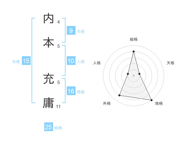 内本 充庸さんの総格は25画の4点!