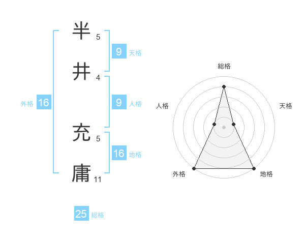 半井 充庸さんの地格は16画の5点!