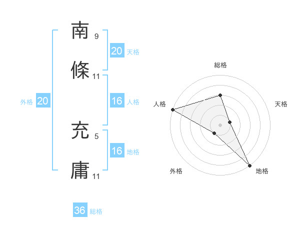 南條 充庸さんの天格は20画の1点!