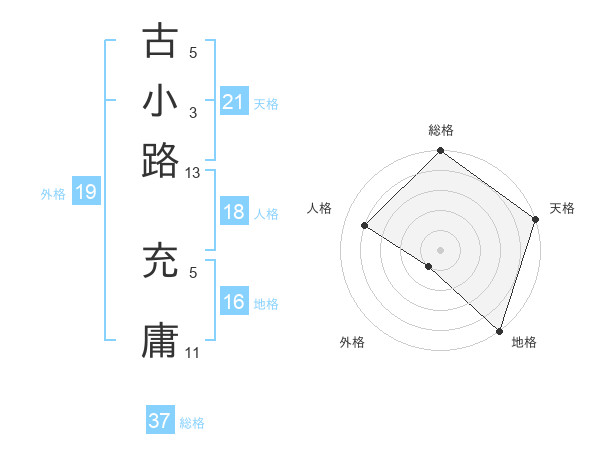 古小路 充庸さんの総格は37画の5点!
