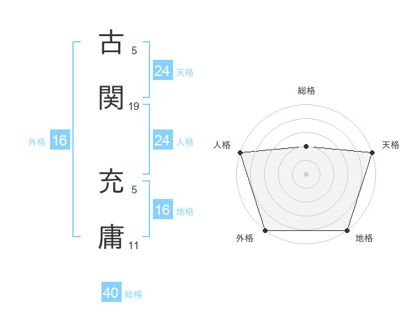 古関 充庸さんの天格は24画の5点!