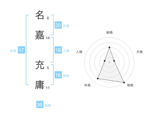 名嘉 充庸さんの天格は20画の1点!