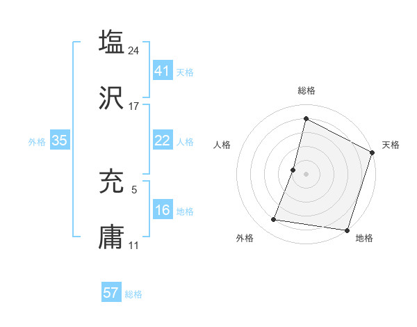 塩沢 充庸さんを姓名の画数から五運を鑑定