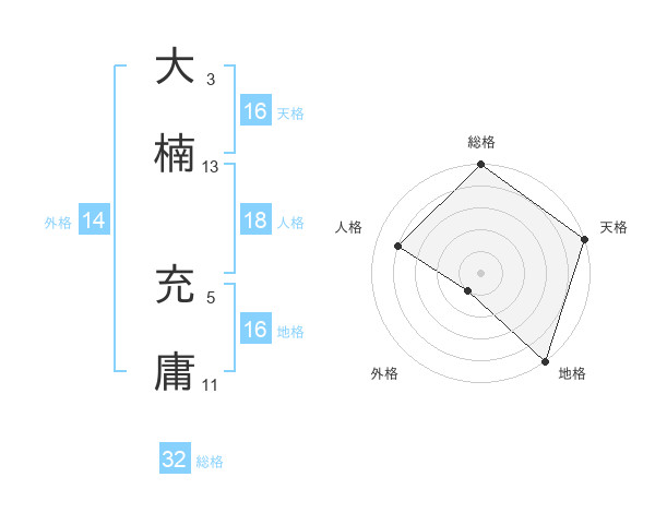 大楠 充庸さんを姓名の画数から五運を鑑定
