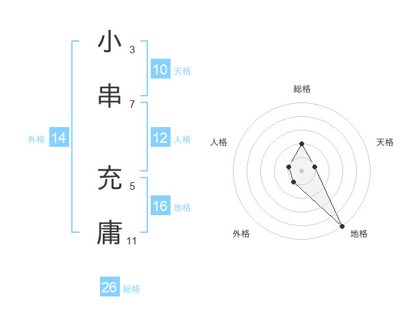小串 充庸さんの総格は26画の2点!