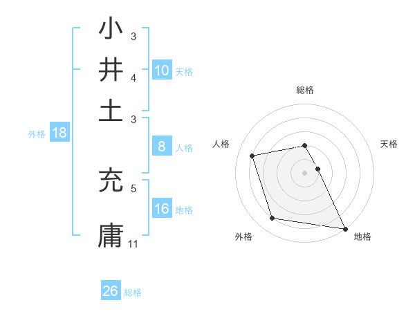 小井土 充庸さんの総格は26画の2点!