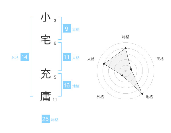 小宅 充庸さんの総格は25画の4点!