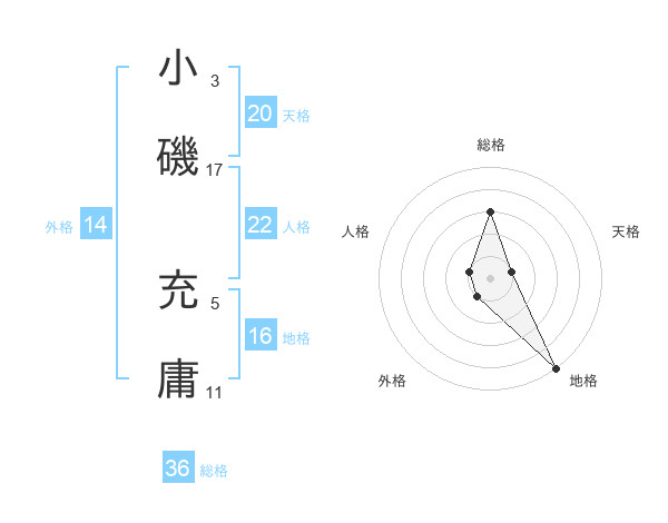 小磯 充庸さんを姓名の画数から五運を鑑定