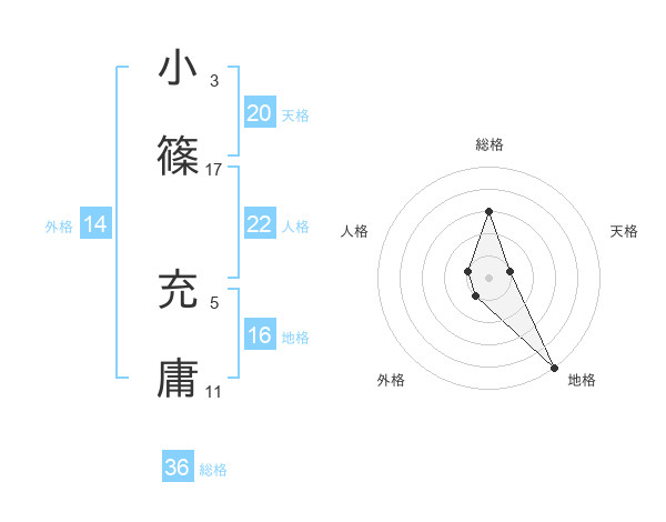 小篠 充庸さんの地格は16画の5点!