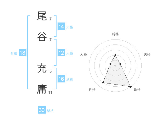 尾谷 充庸さんを姓名の画数から五運を鑑定
