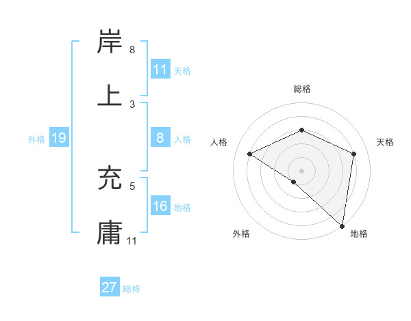 岸上 充庸さんの総格は27画の3点!