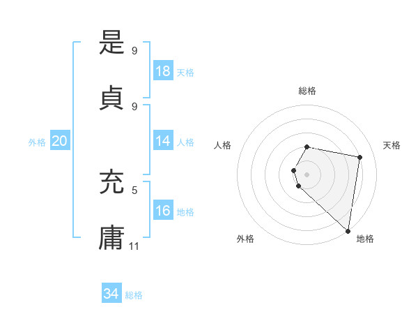 是貞 充庸さんを姓名の画数から五運を鑑定