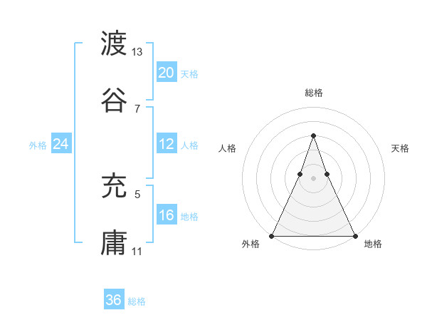 渡谷 充庸さんを姓名の画数から五運を鑑定