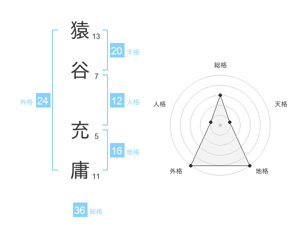 猿谷 充庸さんの総格は36画の3点!