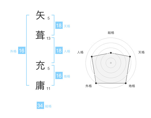 矢葺 充庸さんを姓名の画数から五運を鑑定