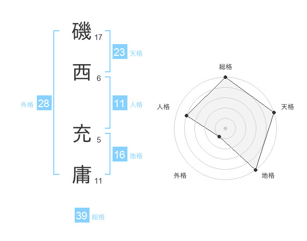 磯西 充庸さんの総格は39画の5点!