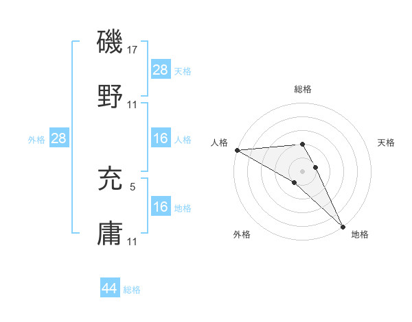 磯野 充庸さんの外格は28画の1点!