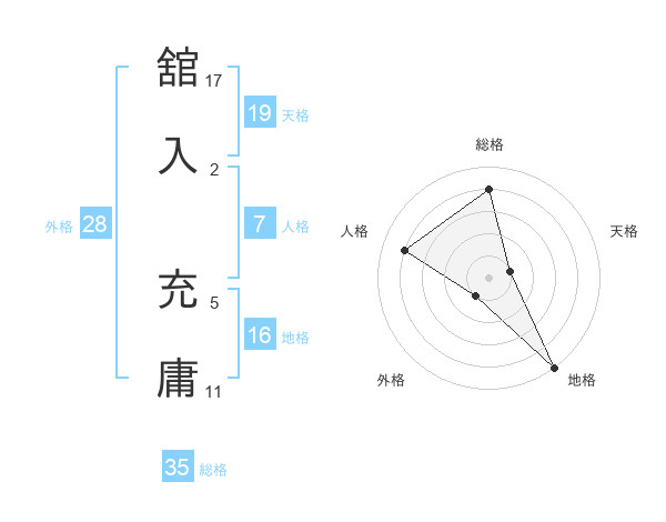 舘入 充庸さんの総格は35画の4点!
