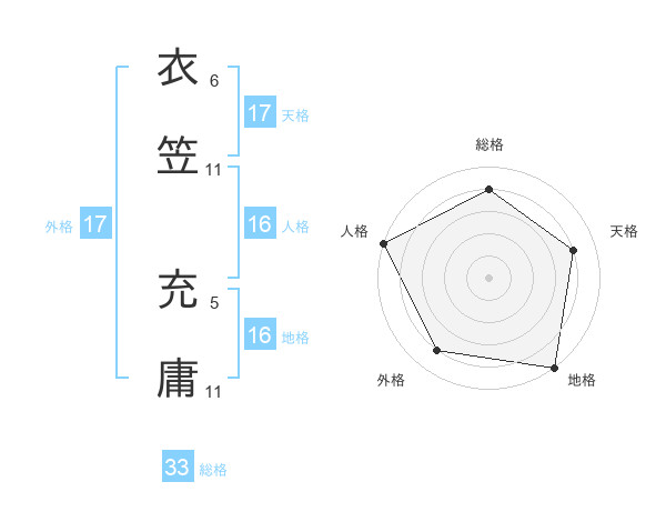 衣笠 充庸さんを姓名の画数から五運を鑑定