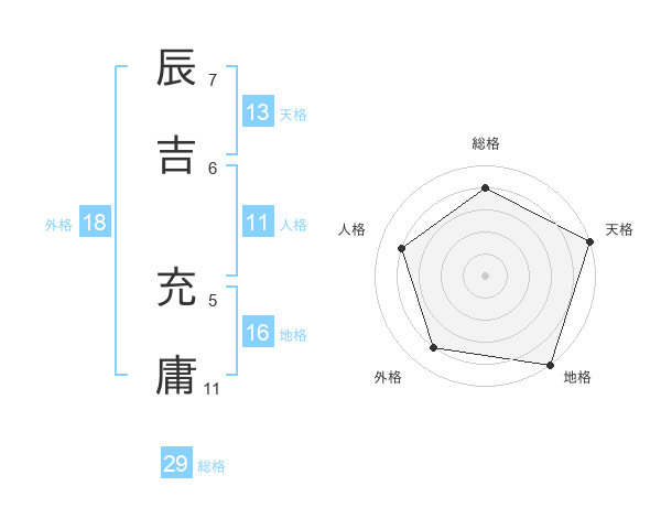 辰吉 充庸さんの天格は13画の5点!