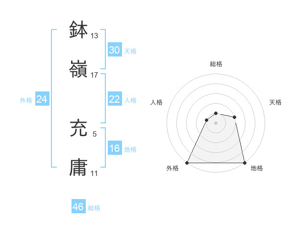 鉢嶺 充庸さんを姓名の画数から五運を鑑定