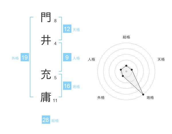 門井 充庸さんの地格は16画の5点!