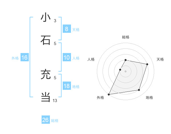 小石 充当さんの総格は26画の2点!